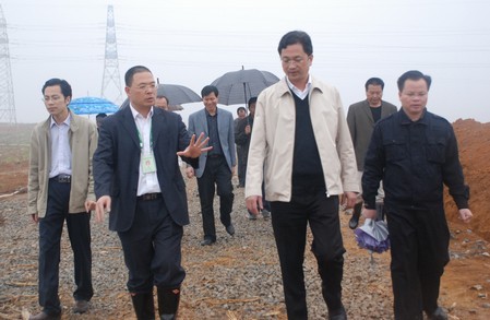 图为崇左市副市长张鸿(中)在检查指导工作。