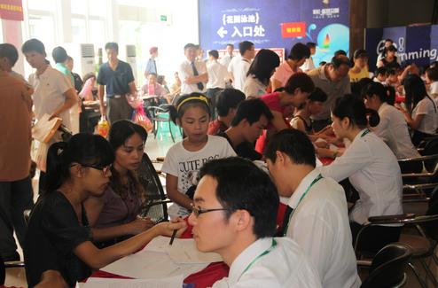 图为气氛欢喜而有序的交房现场。