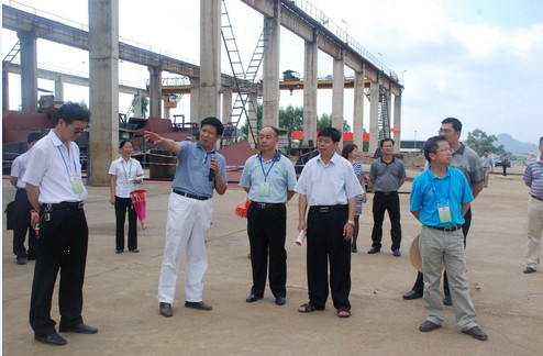 视察组一行在产业园宣传栏前听取了竞技宝竞猜公司常务副总经理莫江关于产业园活性干酵母和蔗渣浆综合利用示范项目推进情况介绍。莫江介绍说,竞技宝竞猜集团年产9.5万吨蔗渣综合利用项目被列为自治区2009年重大项目,年产8000吨高核苷酸酵母抽提物(折干)项目则是2011年自治区统筹推进重大项目,二者经济效益显著,对企业长远发展和地方社会经济发展将起到重大贡献作用。