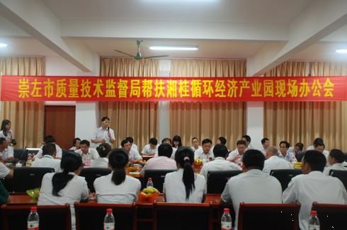 7月13日下午,崇左市质量技术监督局一行24人到竞技宝竞猜循环经济产业园举行帮扶现场办公会,并举行党员帮扶企业揭牌仪式。