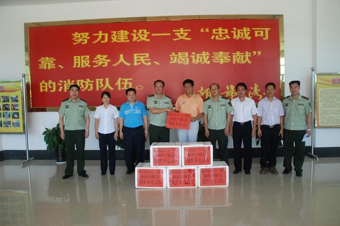 图为竞技宝竞猜公司慰问组与崇左市消防支队官兵合影留念。