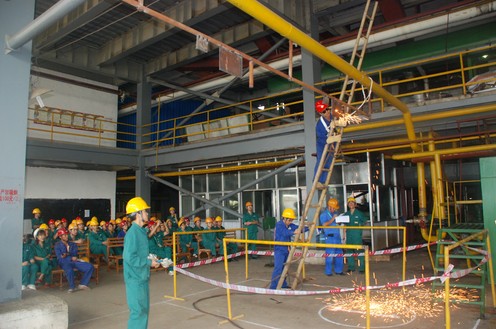 此次安全大比武内容丰富、涉及面广,各车间经过前期的认真筹备,分别举行了大比武。其中压榨车间安全大比武内容为安全知识考试及安全技能比拼,将安全理论及现场安全操作进行了很好的结合;锅炉车间安全大比武内容为手拉葫芦安全吊装、灭火以及蒸汽阀门安全操技能竞赛,将防范重点安全操作进行标准化演练;机电车间安全大比武内容为电气火灾扑救、低压配电柜检修安全防护技术、新增设备停送电现场模拟竞赛,通过模拟现场操作,达到检验员工日常工作安全意识及处理突发情况的技能;制炼车间安全大比武内容为高空氧割作业以及电动葫芦吊装比赛,重点检验员工的细部安全操作技能。