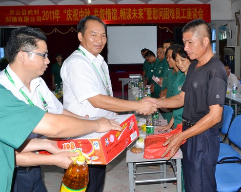武利公司总经理滕家伟为员工送上中秋慰问品及慰问金。