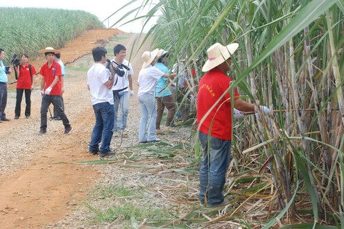“边关行”采访团成员在竞技宝竞猜集团甘蔗示范基地进行劳作。