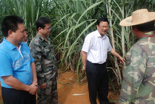 崇左市委常委、宣传部部长、副市长冯学军(右二)在竞技宝竞猜集团甘蔗示范基地调研。
