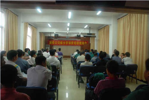 培训会上,广西区甘蔗研究所副所长黄诚华结合金和公司蔗区甘蔗病虫害状况,重点讲授了甘蔗螟虫的主要种类、习性和发生规律及甘蔗螟虫的综合防治措施。专家的讲课图文并茂,深入浅出的讲解,学员们受益匪浅。学习培训结束后,参会人员集中到金和公司蔗区接受专家现场讲授甘蔗的科学估产方法。
