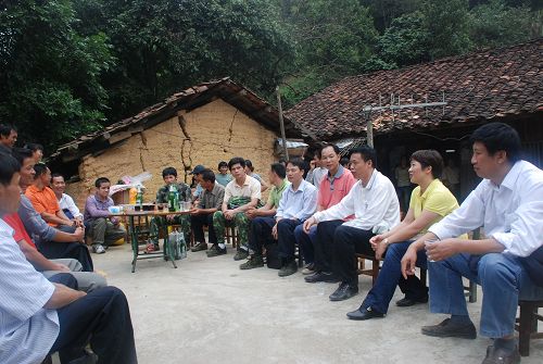 在咪岜屯,考察组听取了屯支书农志能关于咪岜屯甘蔗种植情况的介绍。他说,咪岜屯甘蔗资源丰富、产量可观,但由于山高路险,道路难行,发展甘蔗种植较为困难。