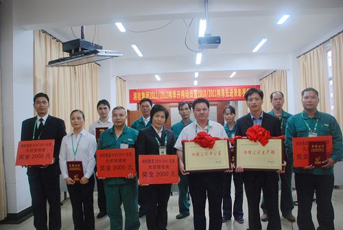 大会对在2010/2011年度中工作表现突出的10个集团先进部门(车间)、10名集团先进管理者、13名集团先进工作者及集团总部先进部门及个人进行了表彰。