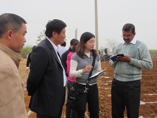 12月28日至29日,印度灌溉巨头、全球第二大滴灌系统装置供应商吉安灌溉系统公司(Jain Irrigation Systems Ltd.) 代表纳塔拉詹先生(Mr.Natarajan)到竞技宝竞猜公司蔗区调研考察。江州区政协副主席滕若宙、糖业局副局长罗春毅、水利局副局长黄国政等领导陪同考察并参加座谈。