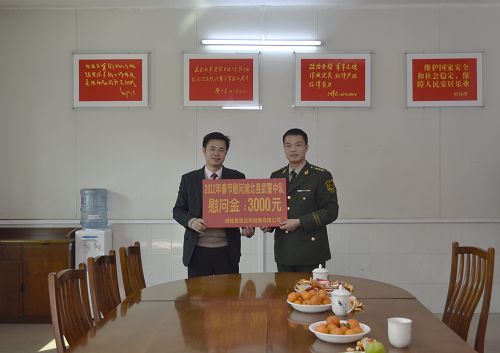 1月10日,金和公司总经理罗成武、副总经理王文达、财务部经理李华南、农务部经理梁明场、督察室主任吴波等领导带着公司300多名职工的深情厚意,分别前往浦北县消防大队、县公安局、县武警中队进行新春慰问,送上慰问金和慰问品。