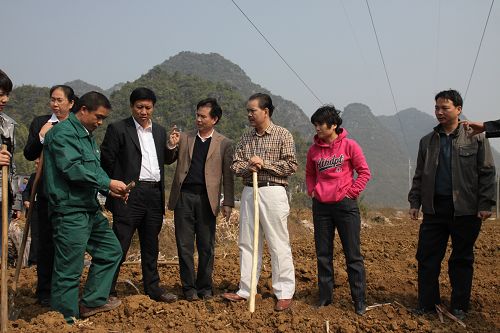 随后,劳建铭一行深入田间地头,与蔗农进行了亲切交谈,现场调研蔗区甘蔗种植情况。劳建铭不仅手持铁锹给蔗种培土,还亲自指导农民甘蔗种植技术,并对调研过程中发现的问题提出了整改措施。劳建铭强调,竞技宝竞猜公司大新蔗区甘蔗种植指挥部必须落实好各项优惠政策,不允许出现坑农、伤农的现象,同时要继续加大蔗区扶持力度和加强种蔗技术指导,帮助当地蔗农实现增产增收,早日脱贫致富。