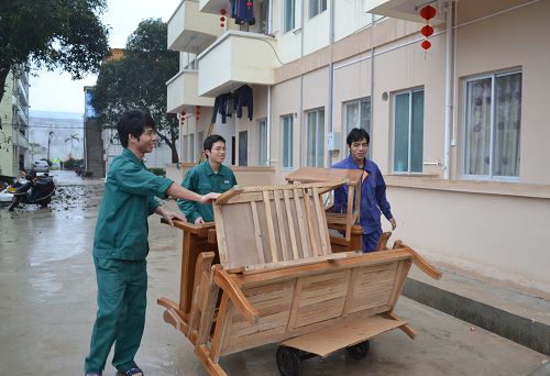 员工们搬运家具,喜迁新居。