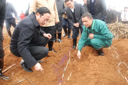 随后,陈章良和黄克等领导还兴致勃勃地参与甘蔗种植劳动,与蔗农们一起砍蔗种、培土、铺滴管、盖地膜。他们一边劳动,一边和干部群众亲切交谈,鼓励大家紧紧依靠科技,种好甘蔗,发展好甘蔗支柱产业。