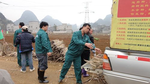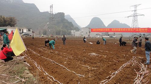 农民春耕种蔗的忙碌景象。