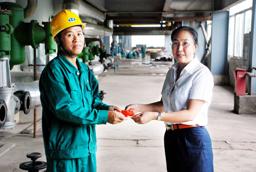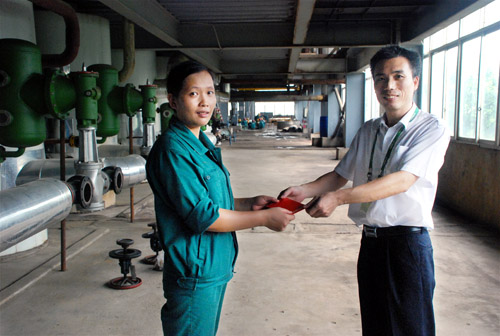 7月21日是公司收假上班第一天,黄春梅等公司领导便深入一线车间慰问了黄能成、李洁洪等困难党员并送上慰问金。慰问中,黄春梅与他们亲切交谈,仔细询问收假上班及生活情况,感谢他们为公司发展所做的贡献,希望他们今后一如既往的支持公司发展,脚踏实地的做好本职工作,努力做出更大贡献。黄能成、李洁洪等困难党员纷纷表示,非常感谢公司的关怀,他们将不辜负公司对他们的期望,继续为公司贡献自己的绵薄之力。