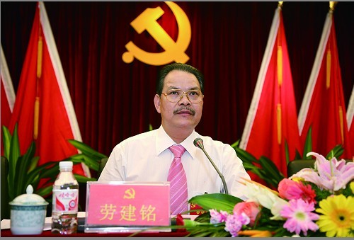 图为集团党委书记、总裁劳建铭在动员会上作重要讲话。
