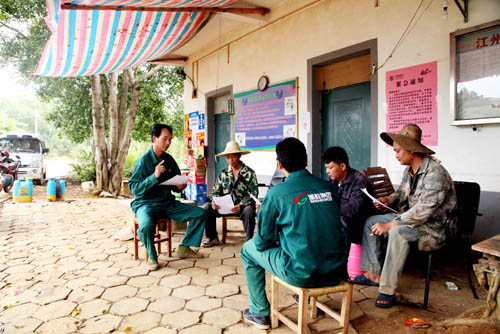 蔗管员在甘蔗收购中转站宣传甘蔗管护知识。