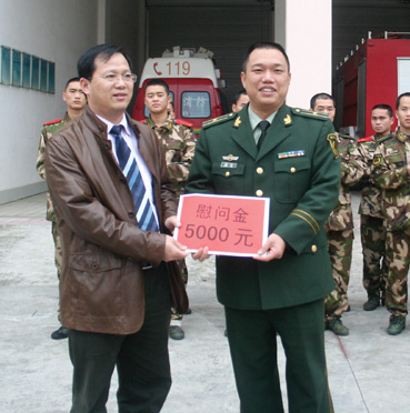 武警中队相关领导也向与会人员介绍了部队在09年开展的部队建设、训练、执勤等方面的情况,总结了双方在军民共建工作上取得的可喜成绩。最后,蒙子函主席代表集团公司向武警中队、武警消防中队送上慰问金和慰问品。