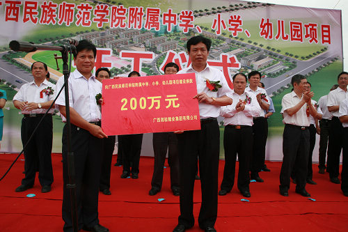 为广西民族师范学院附属中学、小学及幼儿园捐资200万元建校
