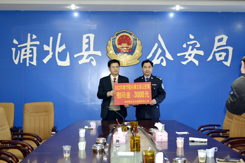1月10日,金和公司总经理罗成武、副总经理王文达、财务部经理李华南、农务部经理梁明场、督察室主任吴波等领导带着公司300多名职工的深情厚意,分别前往浦北县消防支队、县公安局、县武警中队进行新春慰问,送上慰问金和慰问品。