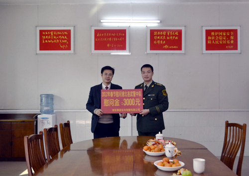 金和公司总经理罗成武为县武警中队送上慰问金。